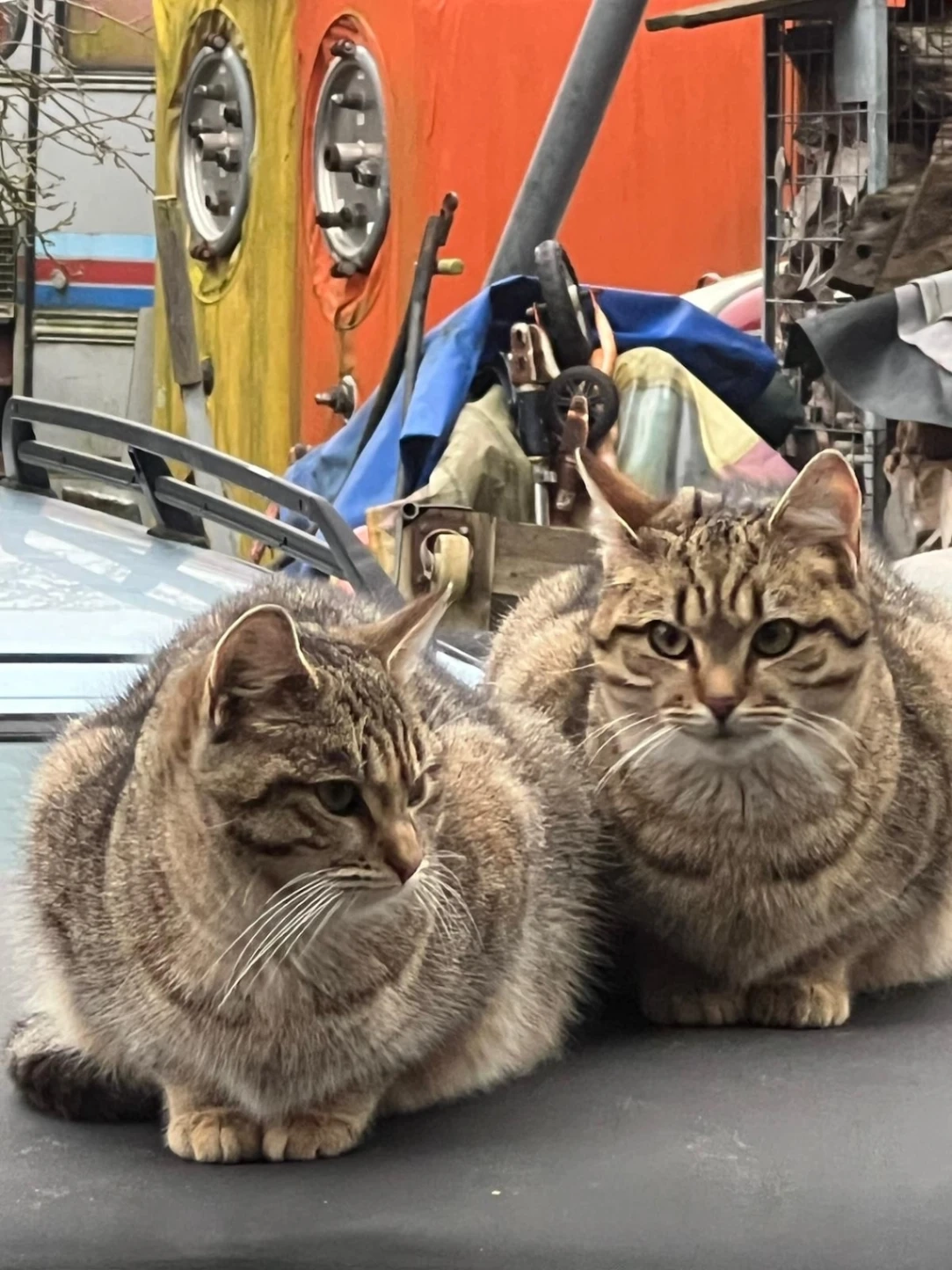 Es sind 2 katzten weg beide identisch bis auf die schwanz spitze die sind braun und schwarz.
