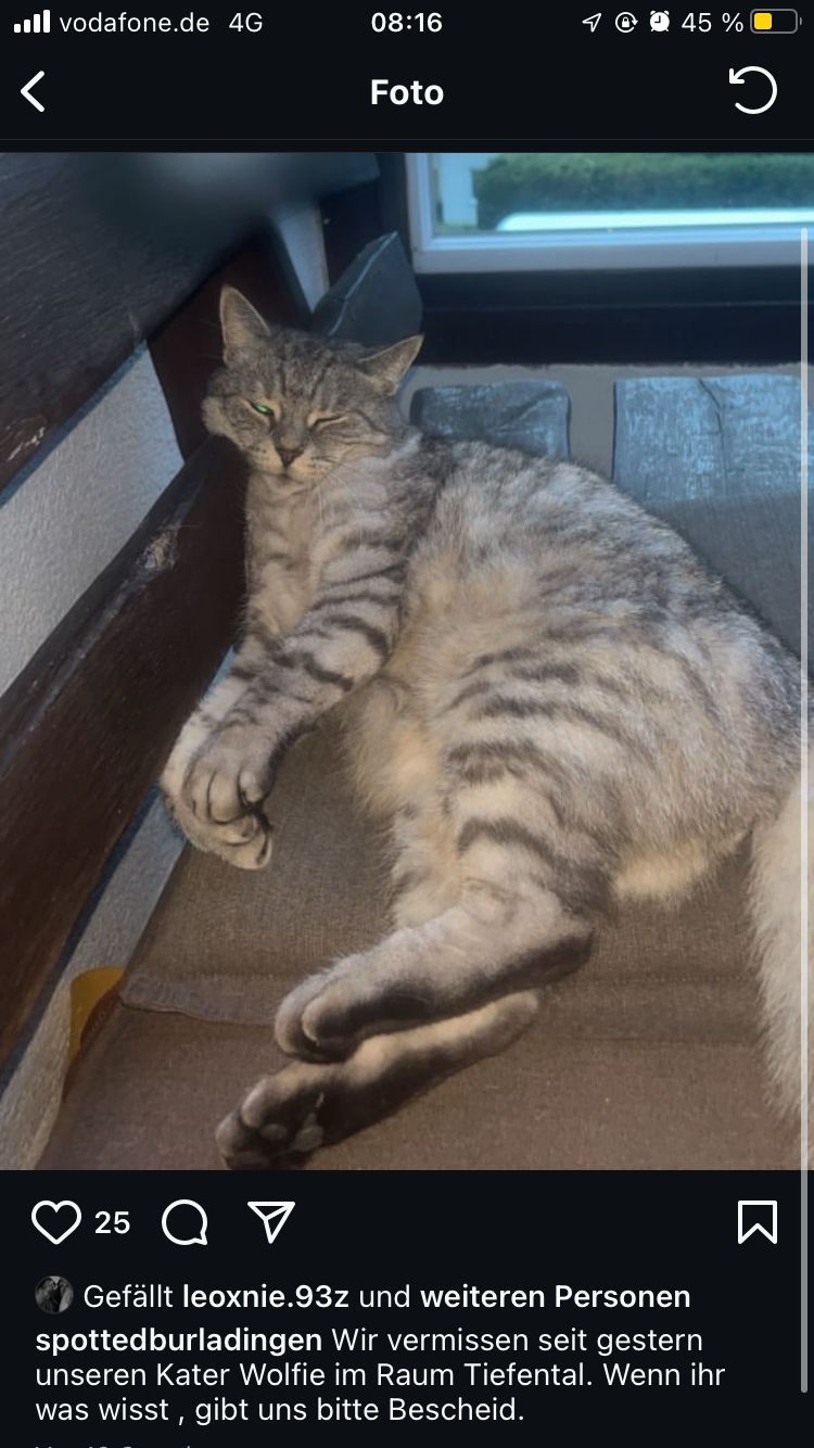 LeoWiedervereint nach1Wo., 4Ta.Tolle Unterstützung während der Suche nach unserem Kater. Danke von ganzem Herzen. ♥️