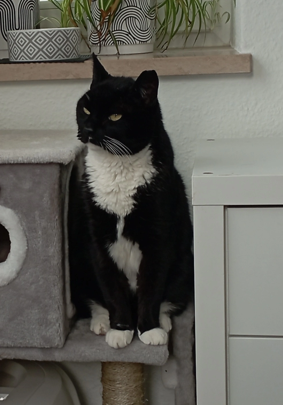 Er ist eher scheu und sehr an mich gebunden. Er ist leider nicht gechipt und auch nicht kastriert.