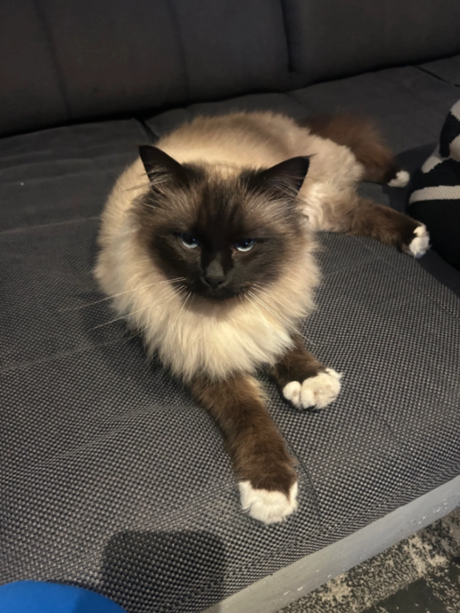 Sie 2 Jahre alt. Sie ist fremden gegenüber scheu da sie bis jetzt unser Zuhause nie verlassen hat ist sie auch nicht Kastriert und hat kein Halsband. Alle 4 Pfoten sind weiss und ein paar ihrer " Nägel' sind rosa.