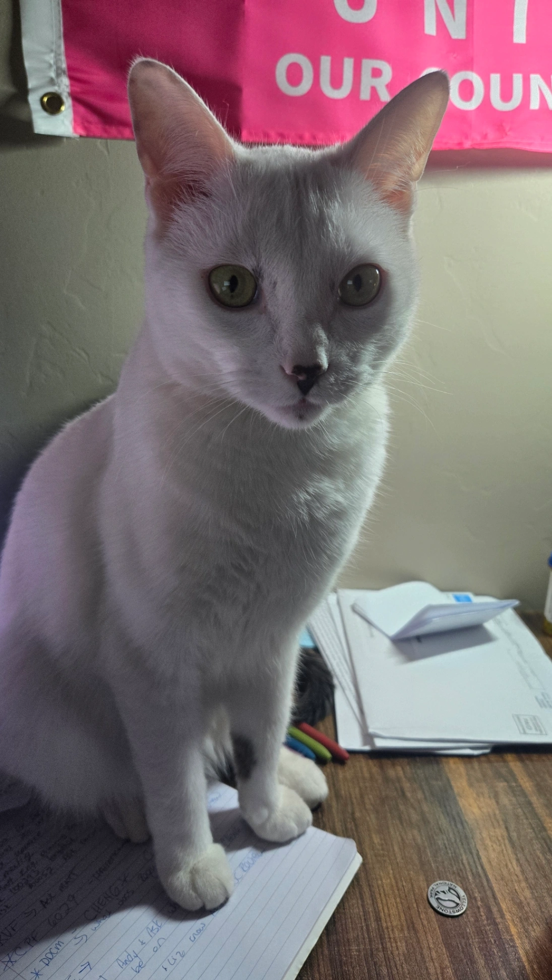 Black, green eyes, he’s got white/grey hair near his crotch area Microchip: Fetch-ID has no collar so someone might of picked him up