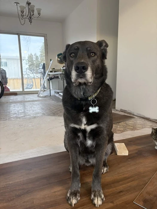 Reznor got spooked and ran off while hiking today March 1/26 at Knox mtn about 10;30 am . He is a 4 yr old Cane Corso/ Akita mix. He isn't used to strangers so pls just contact if spotted. He is wearing a blue/green scooby-doo collar with his mom Courteney's info on it, and he's microchipped . He is an indoor dog so he's likely really scared right now.