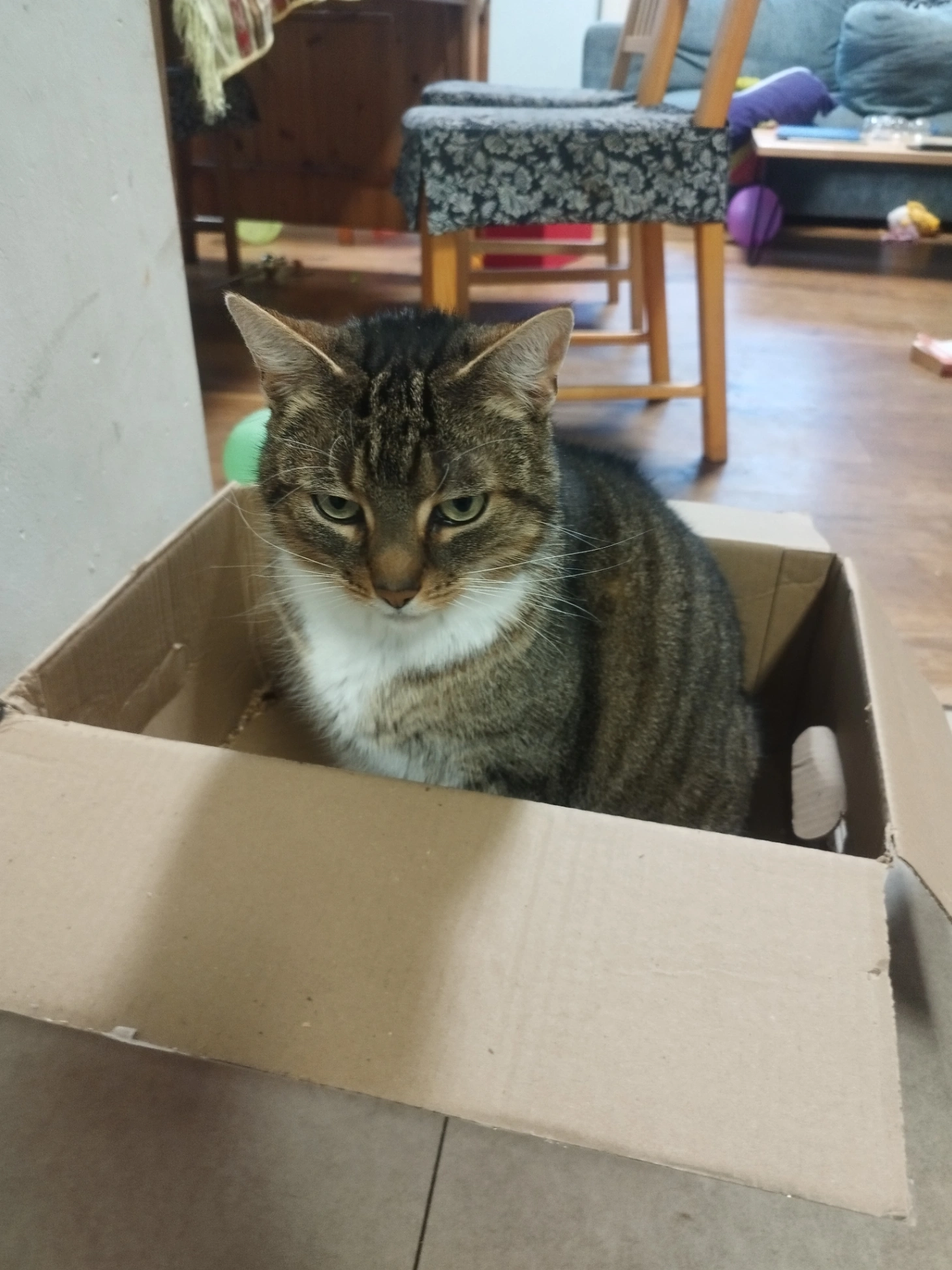 Getigerte Katze, weiße Pfoten, sehr freundlich