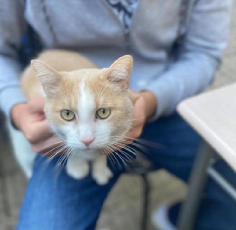 Simba ist schwarz-weiß und noch relativ jung. Sie ist zwei Jahre alt sie wird nächstes Jahr drei.
