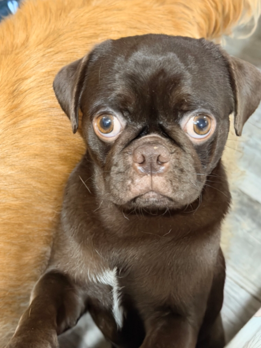 He is a chocolate pug with a white strip down his chest. He is shy and never ventures out. He got out and we have looked everywhere. Please if you see him please bring him home.