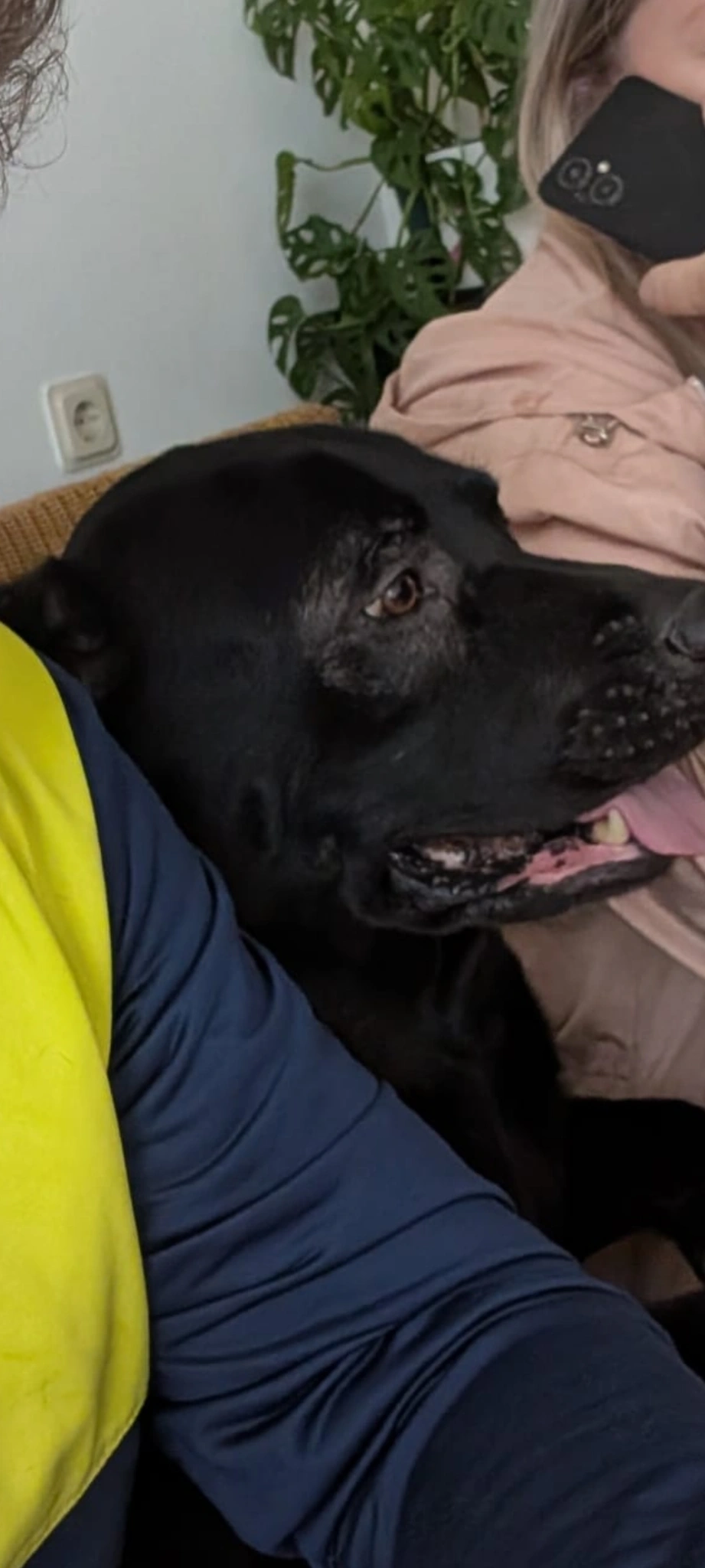 Heel vriendelijk hondje naar mensen toe bruin neus en groenachtige ogen erg druk