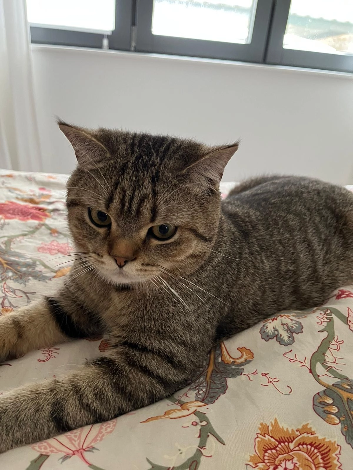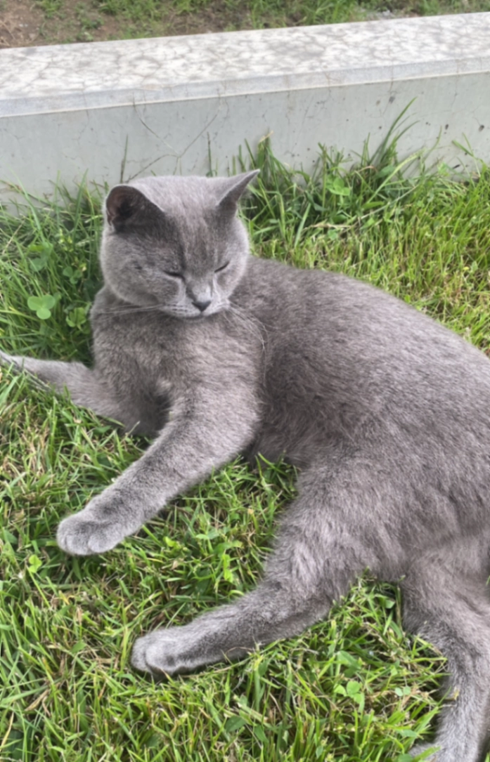 Er ist ein Britisch Kurzhaar, braun-grau getigert.