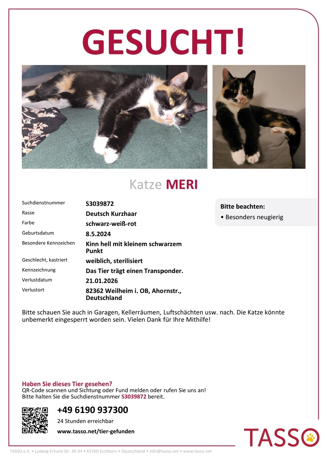 Vermisste & gefundene Katzen in Weilheim in oberbayern