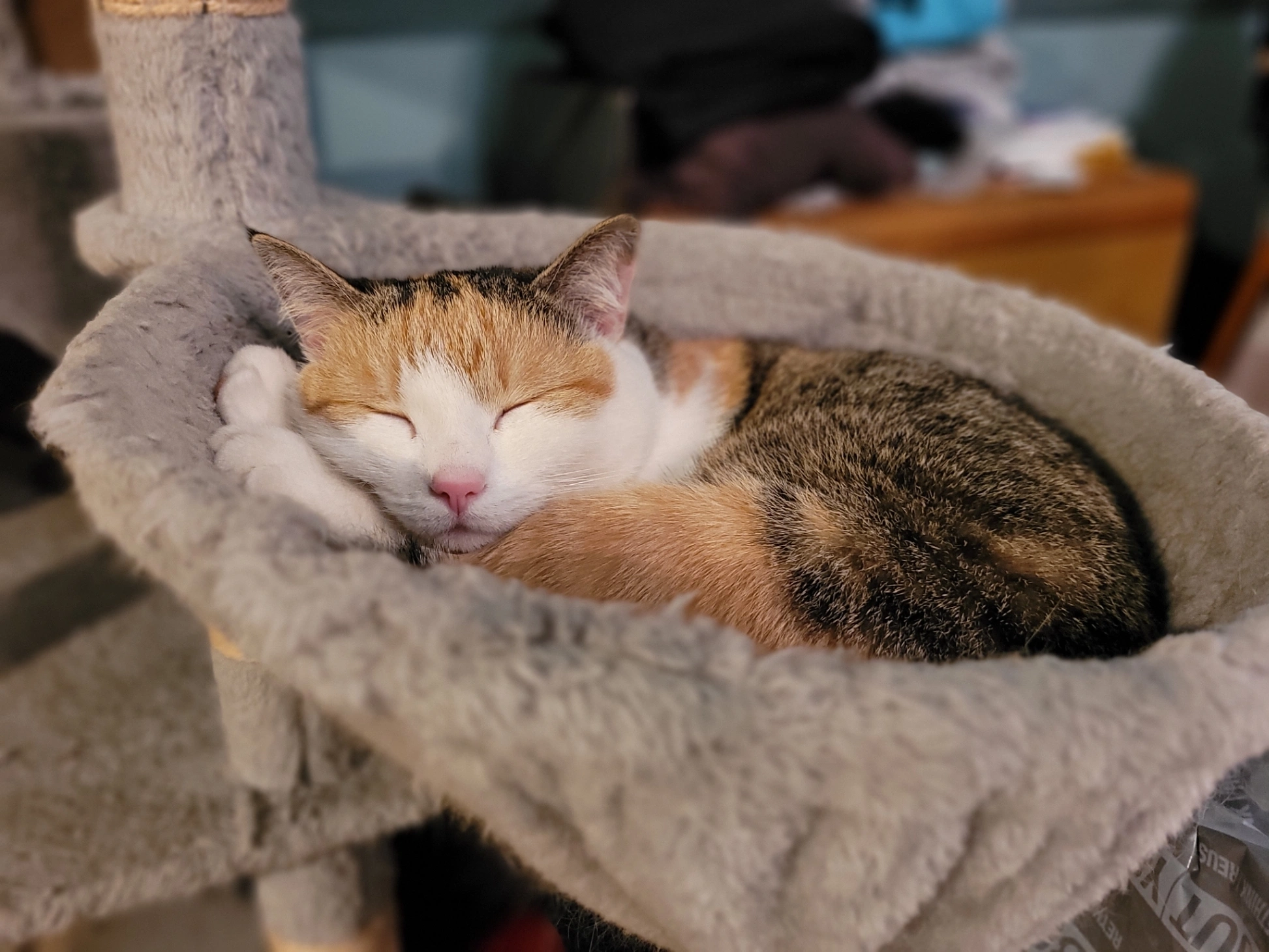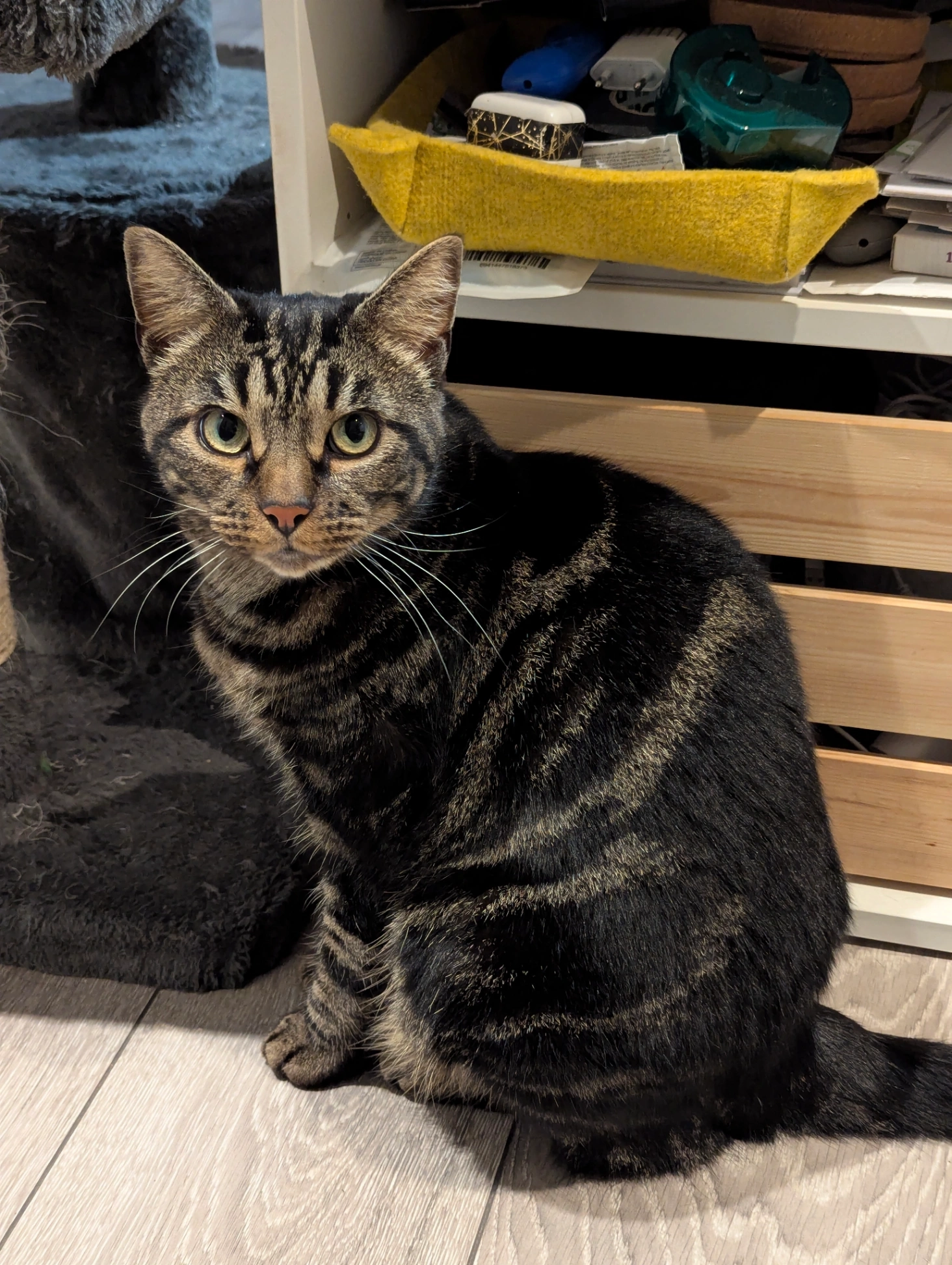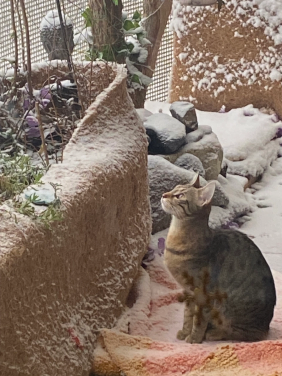 Kia wurde erst vorkurzem aus einem Tierheim adoptiert. Sie ist sehr schreckhaft und kommt bevorzugt in der Dämmerung bzw. in Nacht raus.
