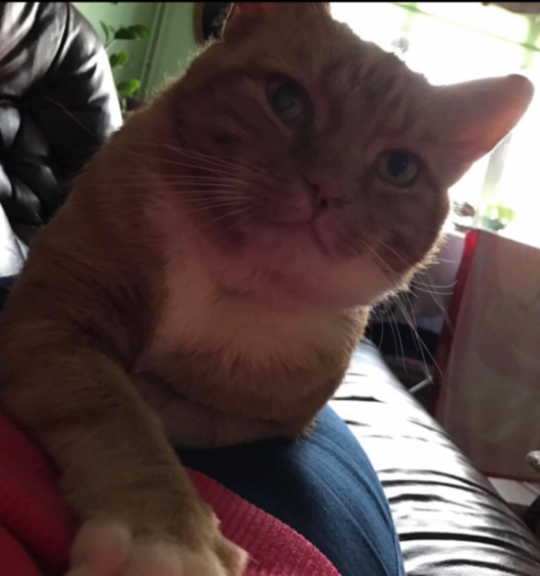 Ernie is a ginger Tom with a white bib and a couple of white socks