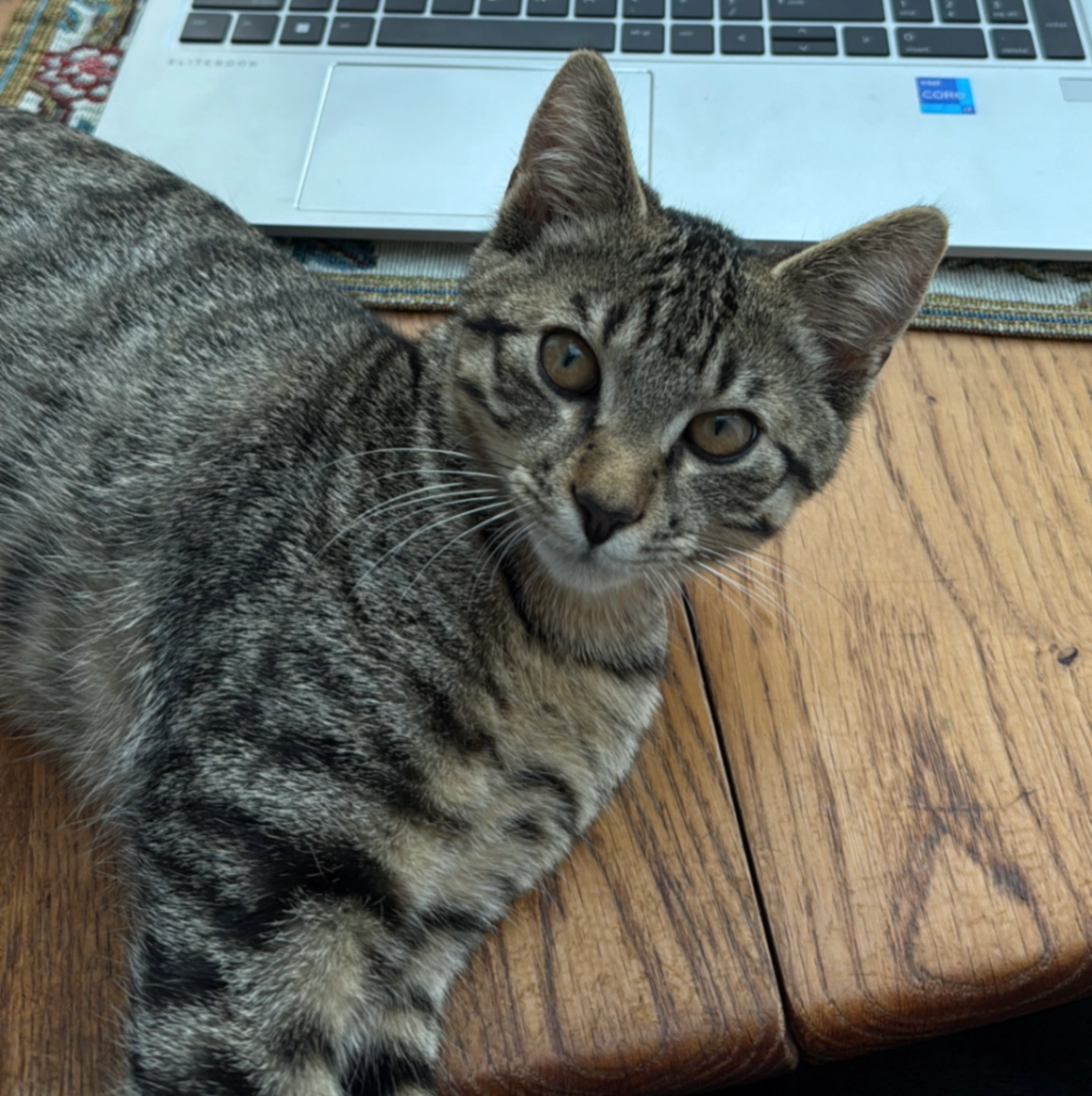Teun is een ranke cyperse kat. Hij is nog jong (6 maanden), gecastreerd, erg speels maar een beetje schichtig. Ik denk voor vreemden niet heel makkelijk om aan te halen.