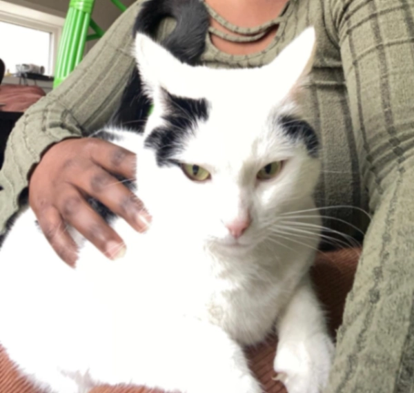 She is a kitten not even 1 years old. She a kind of chubby for a kitten. She has no coler and no chip.