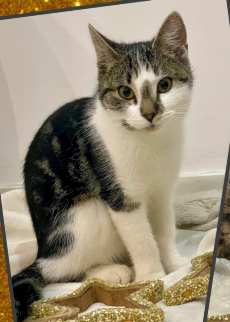Ze is 2,5 jaar oud, een rustige maar speelse tijger achtig zwart, wit grijs