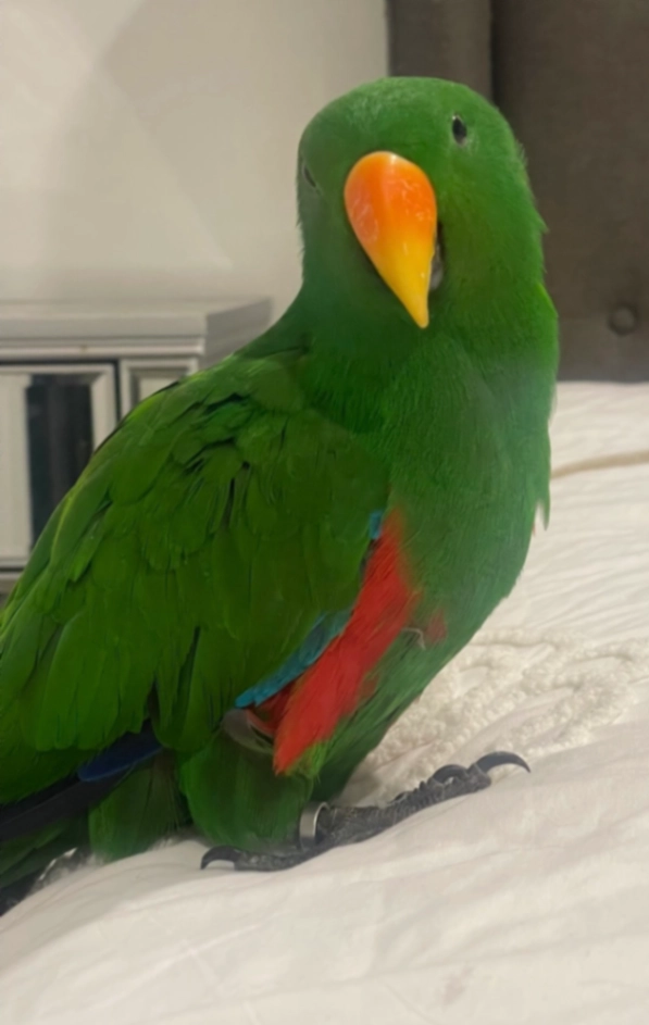 Green male eclectus parrot gone missing in parkwood. They both speak a different language and are friendly