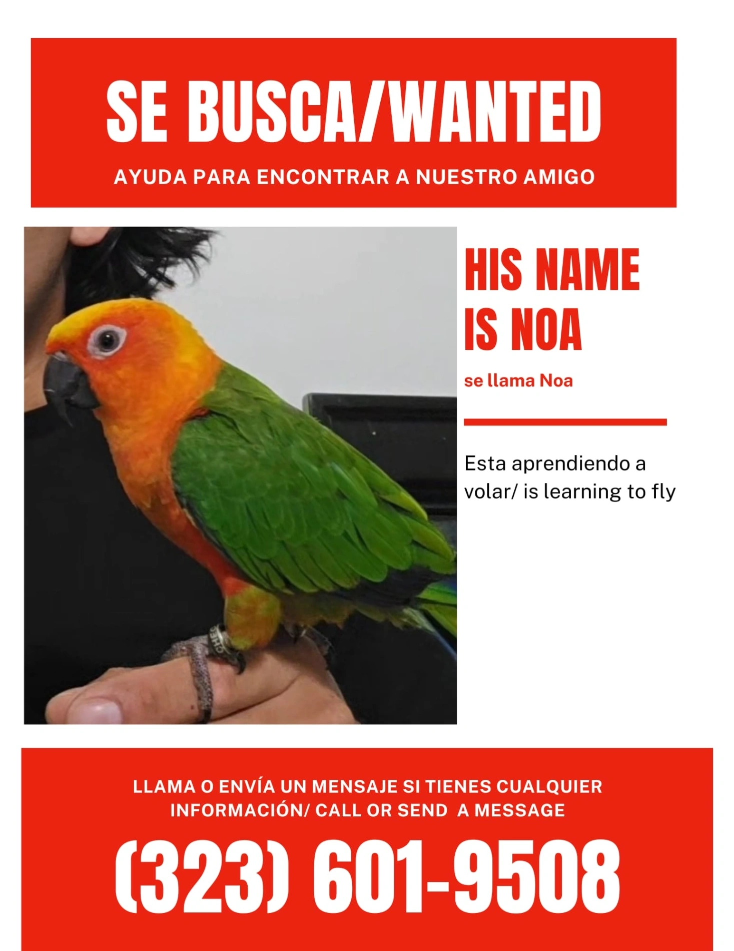 Name: Squeak. Breed: Brown-headed parrot. Age: Two years. Wings are clipped. If found or spotted, please contact [email protected] Thank you.