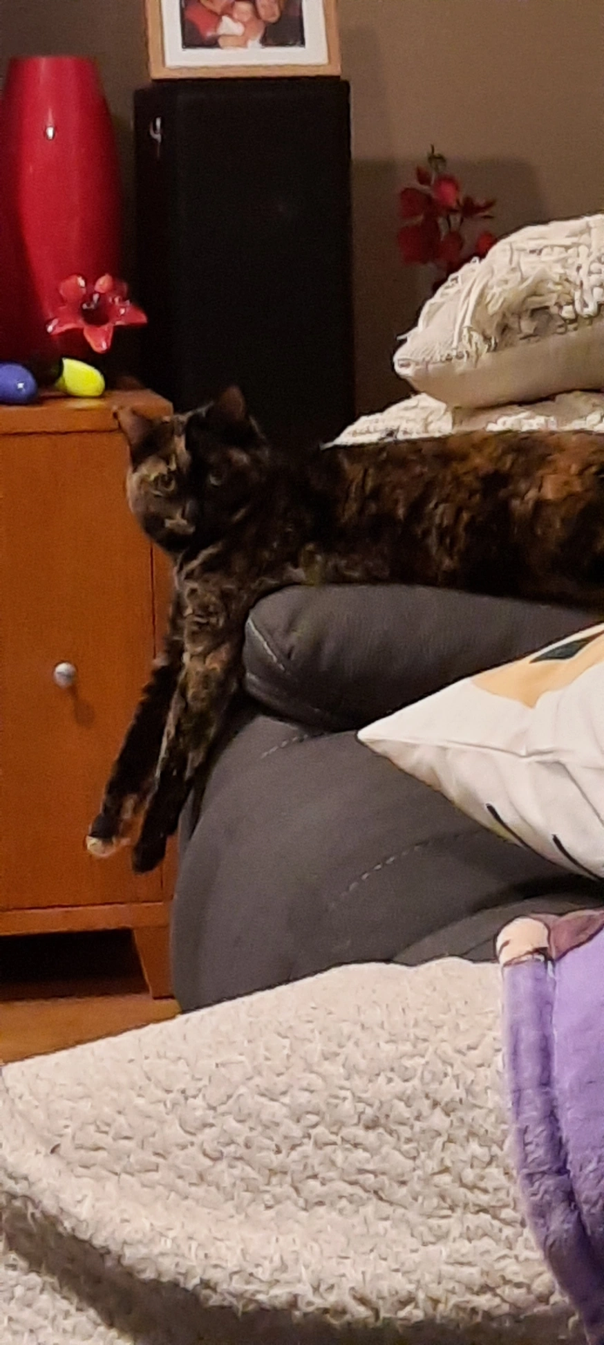 Prada is a short haired tortoise shell domestic cat. She is a indoor cat so will be timid and frightened.