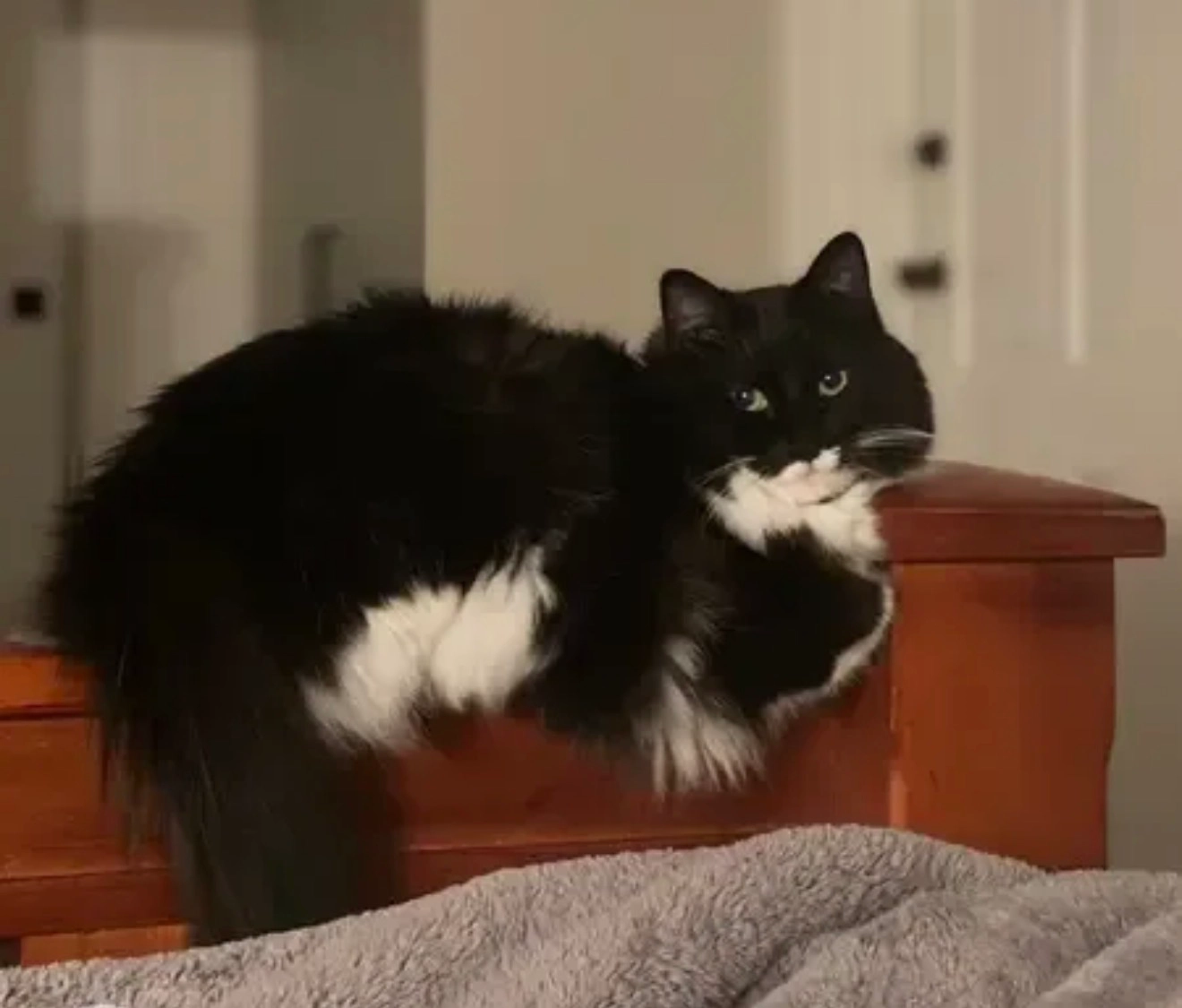 Friendly black and white cat. Her name is Blair. Went missing last night.