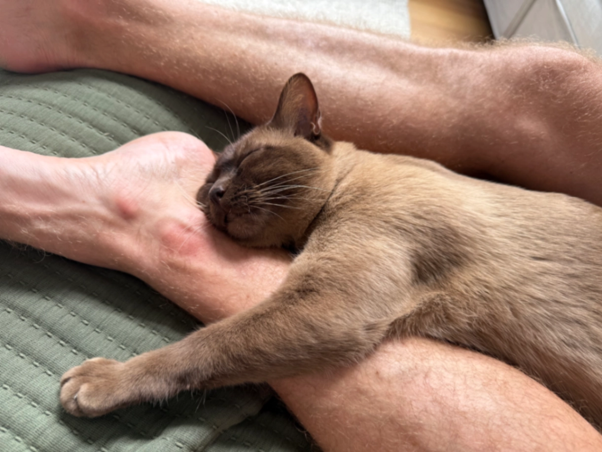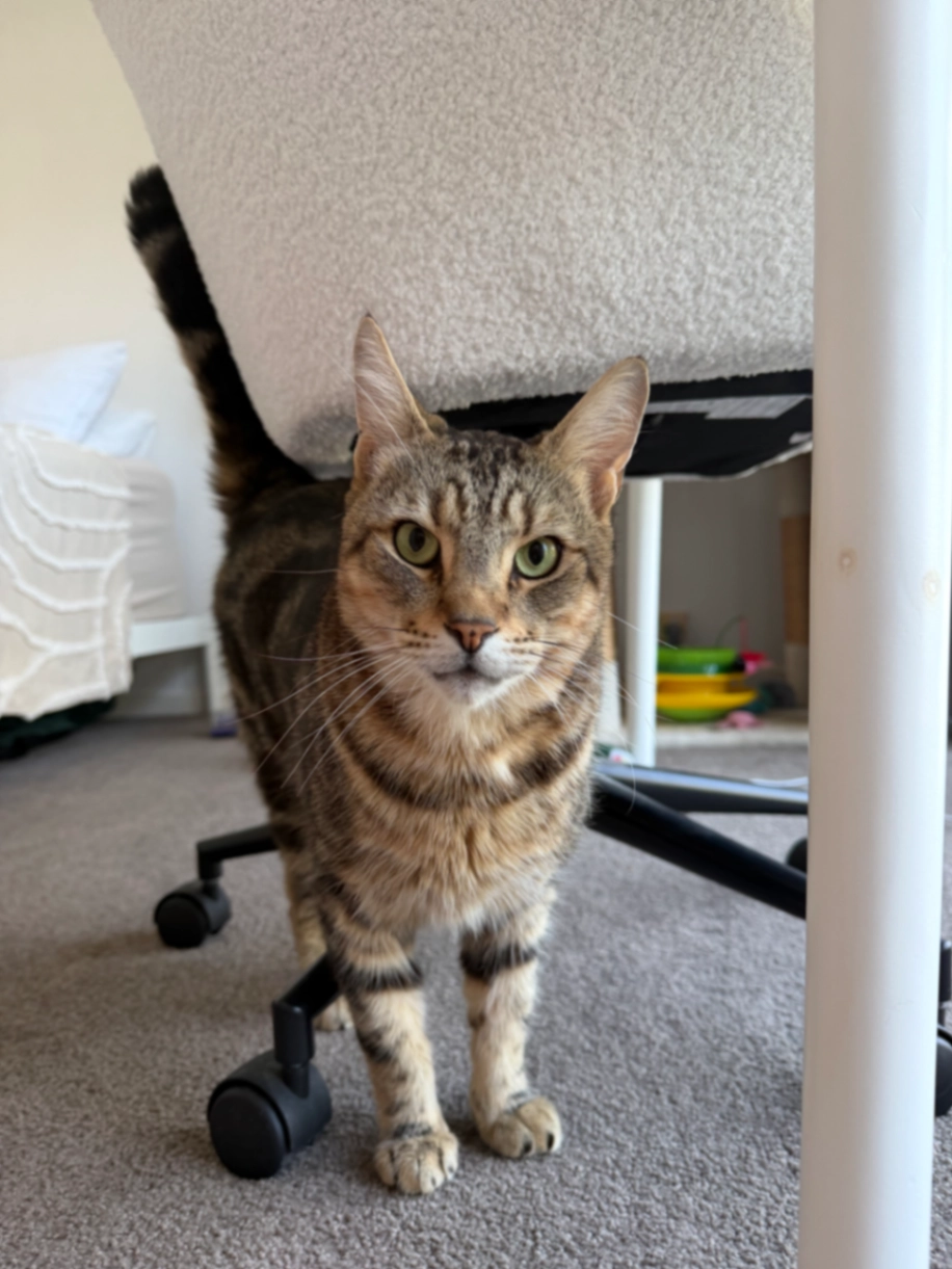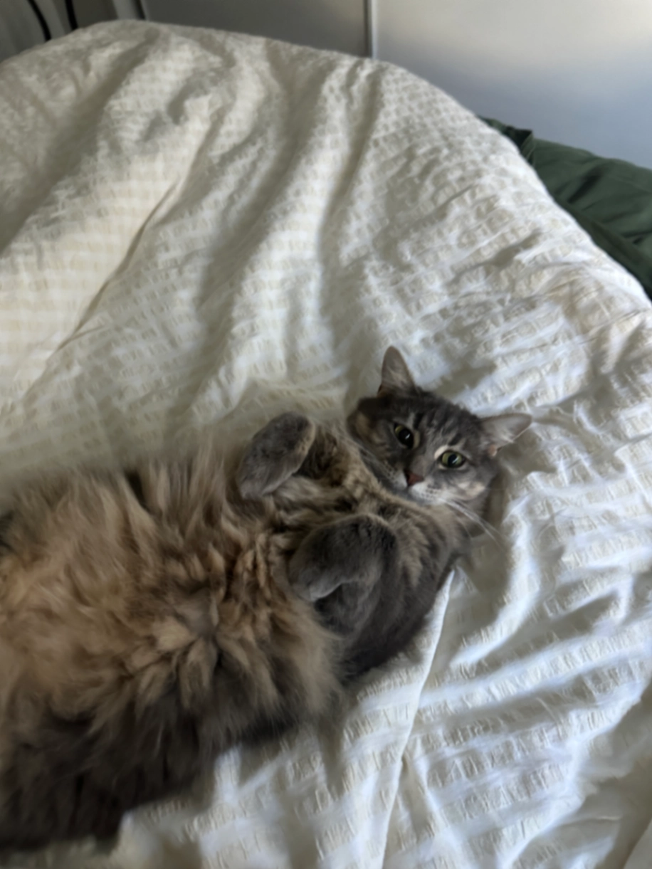 This is Pete- he is about 4, large tabby cat. He is a sweet heart. He has a big chin and small front legs