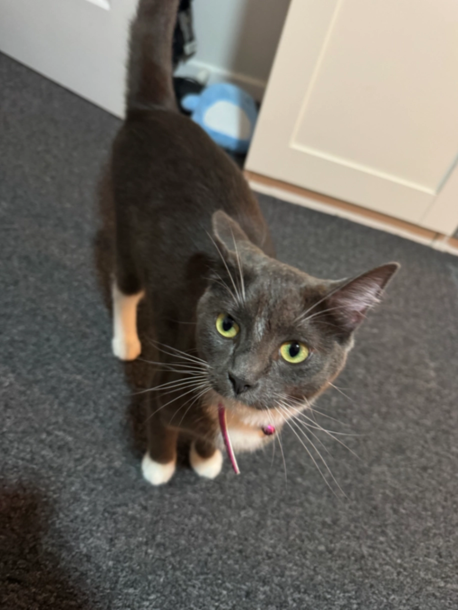 Ragdoll x British shorthair. Grey and white cat. Female. Desexed. Only 1yr and 3 months old