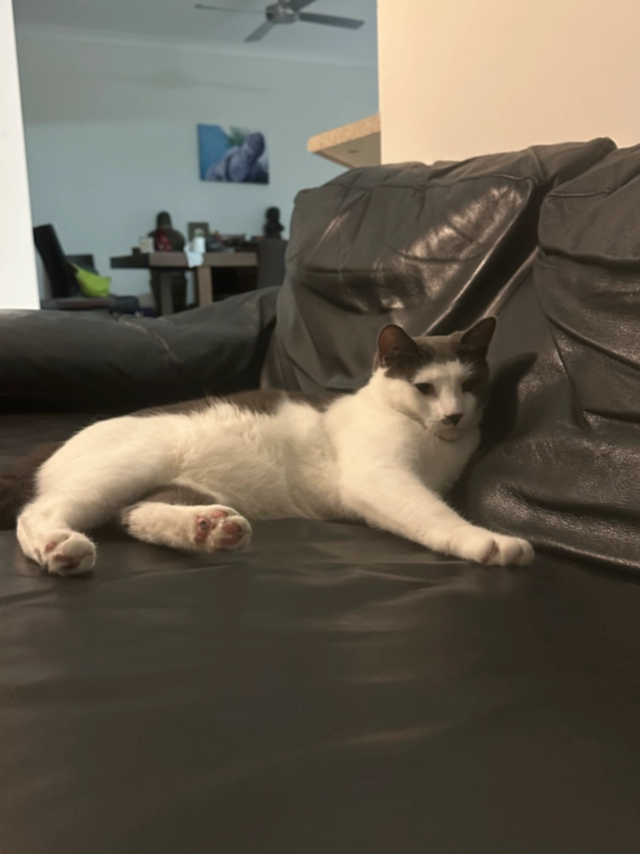 Small, black and white desexed microchipped female cat. 6 years old.