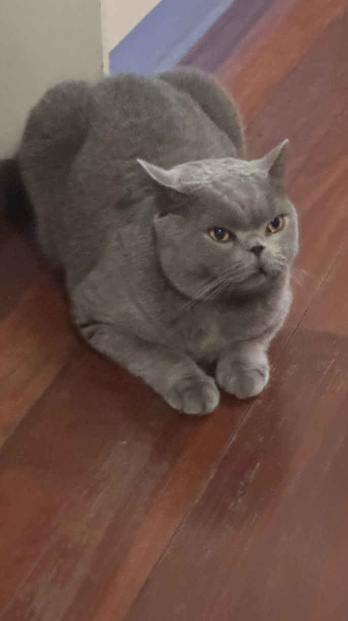 Chowder is a domestic short hair. He is 2 years old and weighs about 6kg. He has green eyes