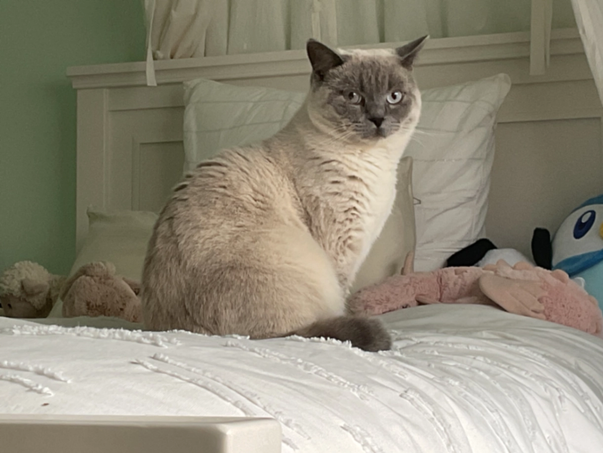 Snowball is a 1 year old, British shorthair cat. Does not like being held and would hide in a corner if around a stranger.