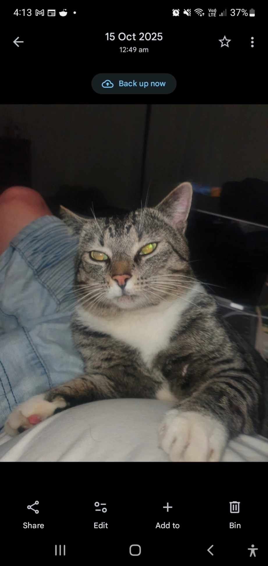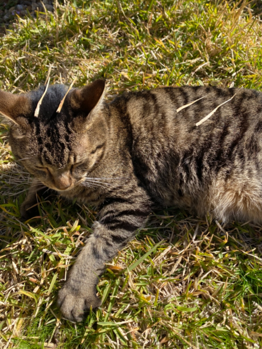 Tuenchi is a 2.5 year old female tabby. She is very active and likes to climb roofs and hide under solar panels. She also often goes into people’s garages.