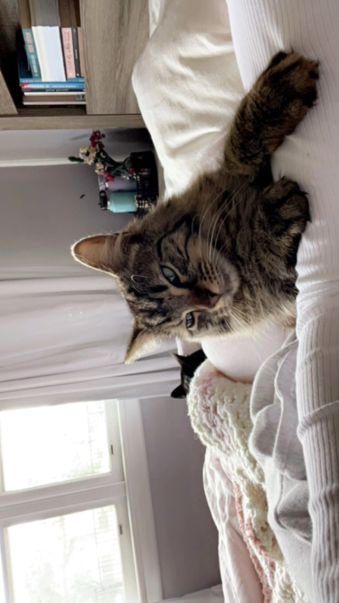 Friendly white paws blackish coat with tiger strip's has a desexing tattoo in her ear and means the world to me