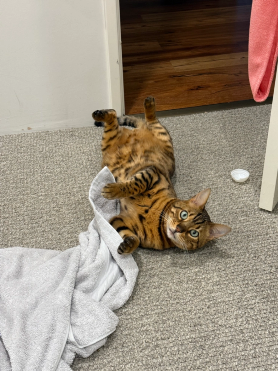 Very chatty and friendly. Has been seen at 11 Fraser Road as well. Known to range the houses around 16