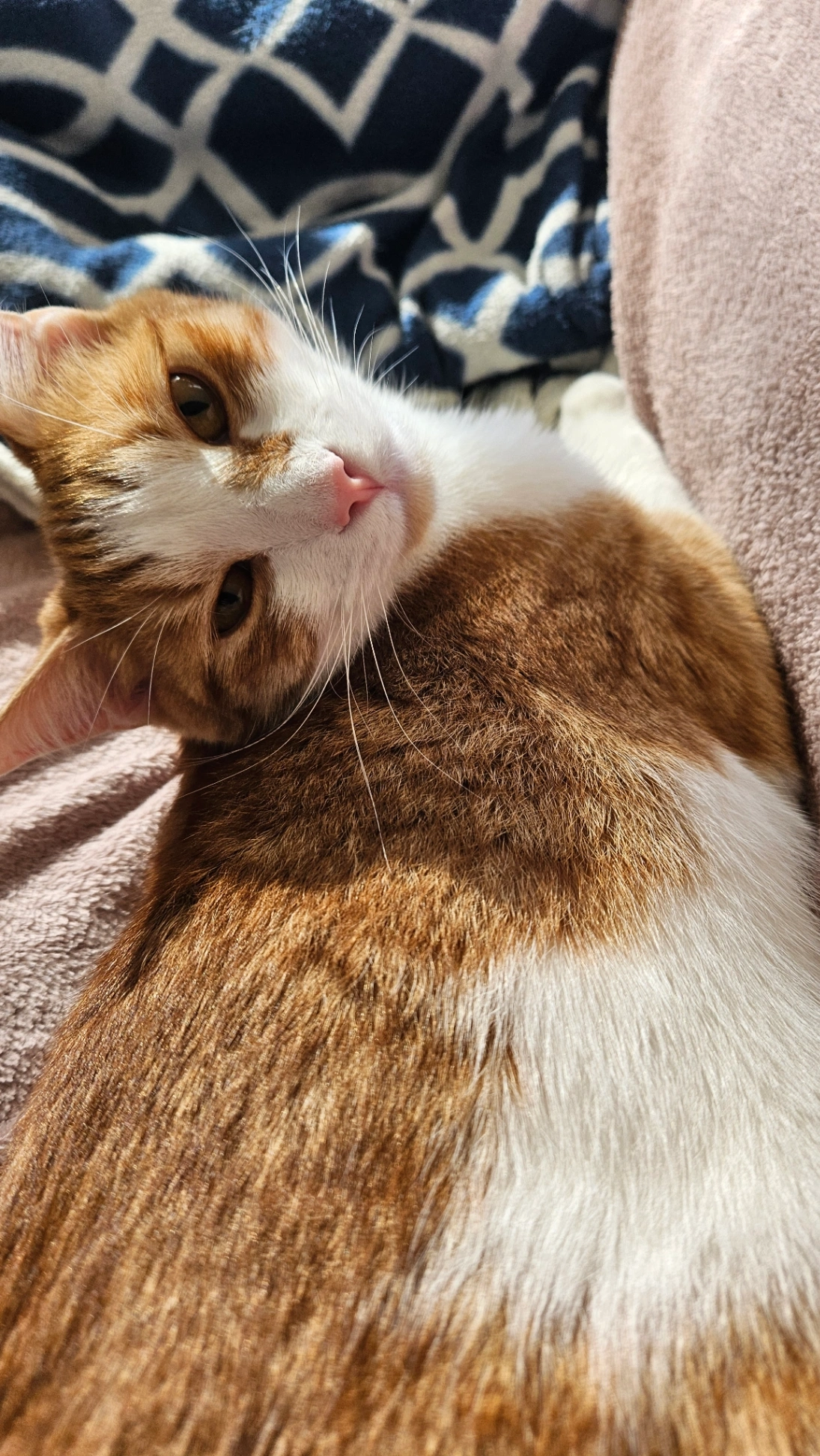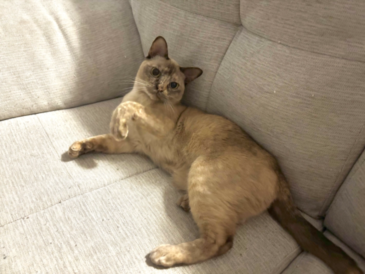 Mimo was adopted from Cat Haven couple of month ago. According to Cat Haven he is 2 years old but he seems younger. We adopted 2 brothers together who have great bonding with each other. Brother still at home. Mimo very playful and energised cat.