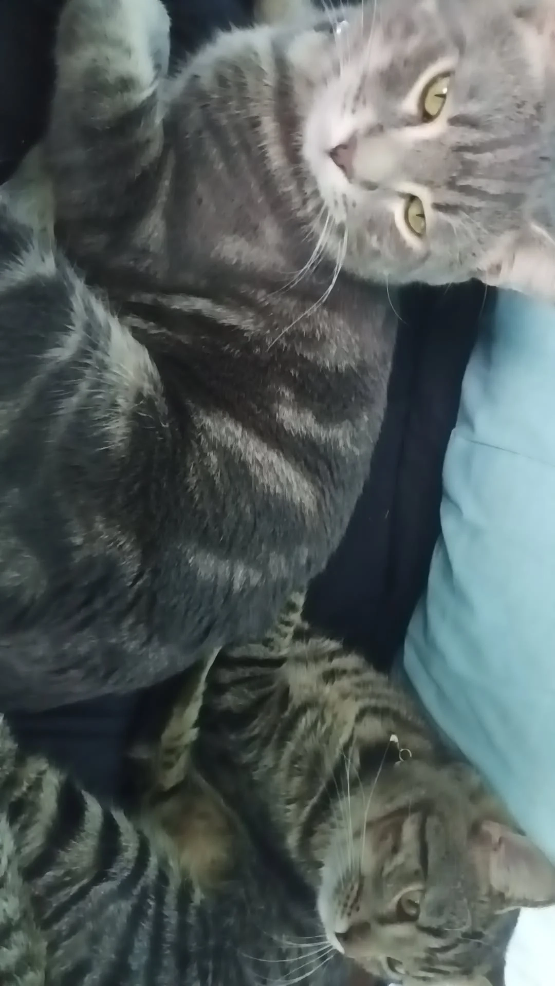 Chaos is short haired brown and black male shadow is short haired black and grey male