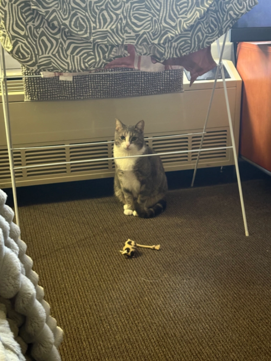 She is microchipped very timid originally from pet haven. She is fixed short haired grey and white 2 years old.