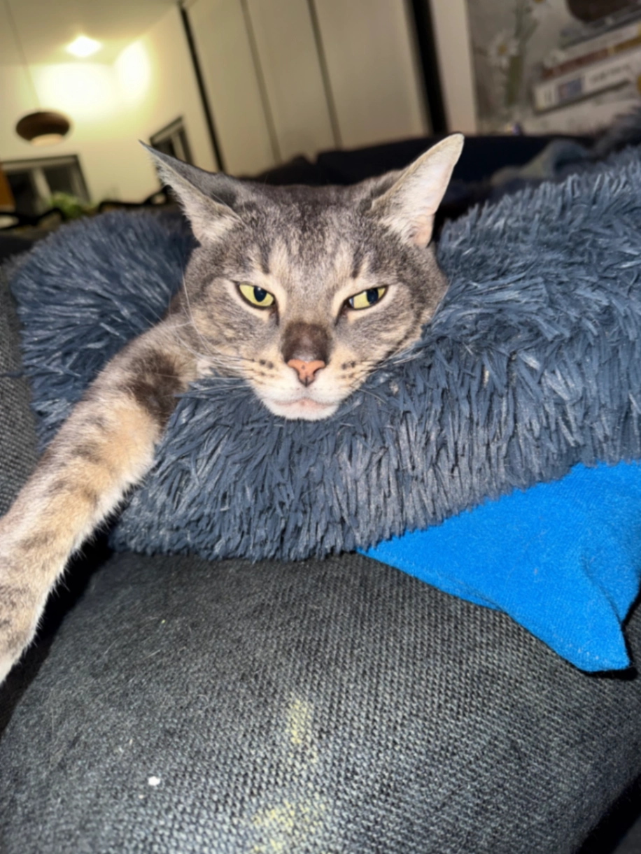 White cat w skate grey markings just over one year old not microchipped as yet mildly street placid sweet