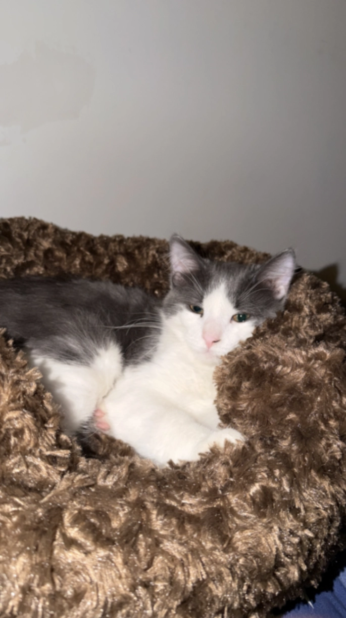 6 months kitten white gray male cat