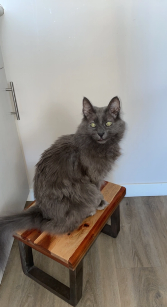13 year old male cat named Ozzy! He is part Mainecoon and part Russian blue hair!