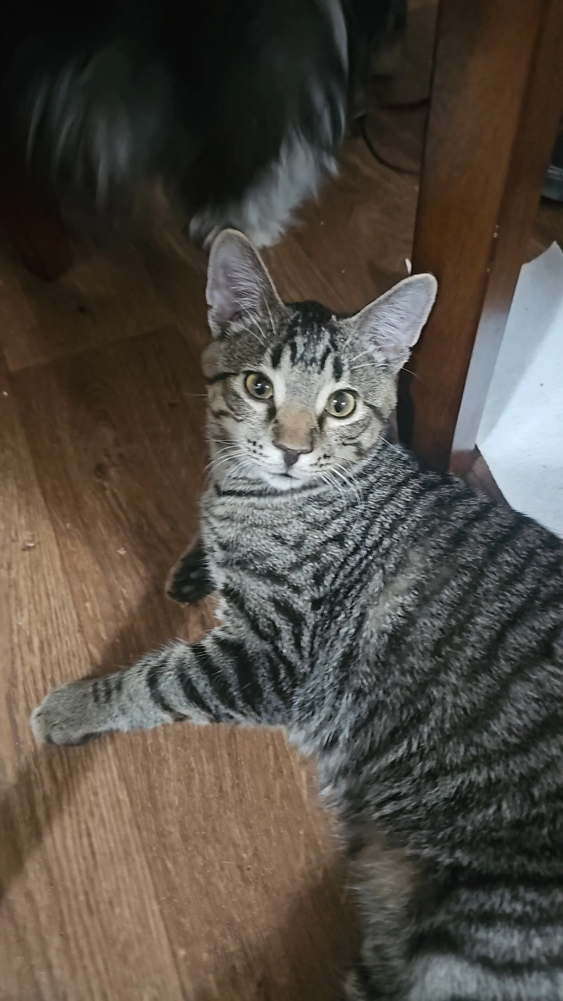 Hes a big friendly cat that has a golden jingle bell collar. And another thing is that he has a bit more color to him than in the photo like more brown more black those colors that are in the photo now are more brighter and more fluffy