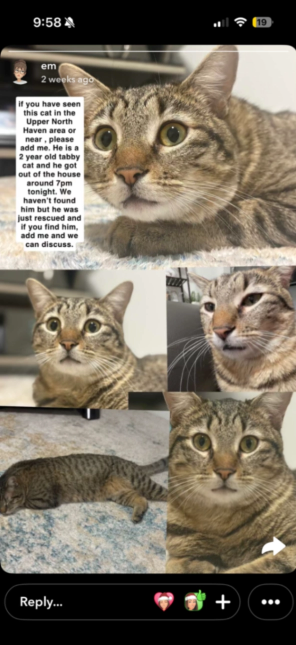 Heβs skittish but a very smart and kind cat if you see him go ahead and just grab him