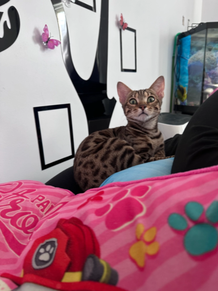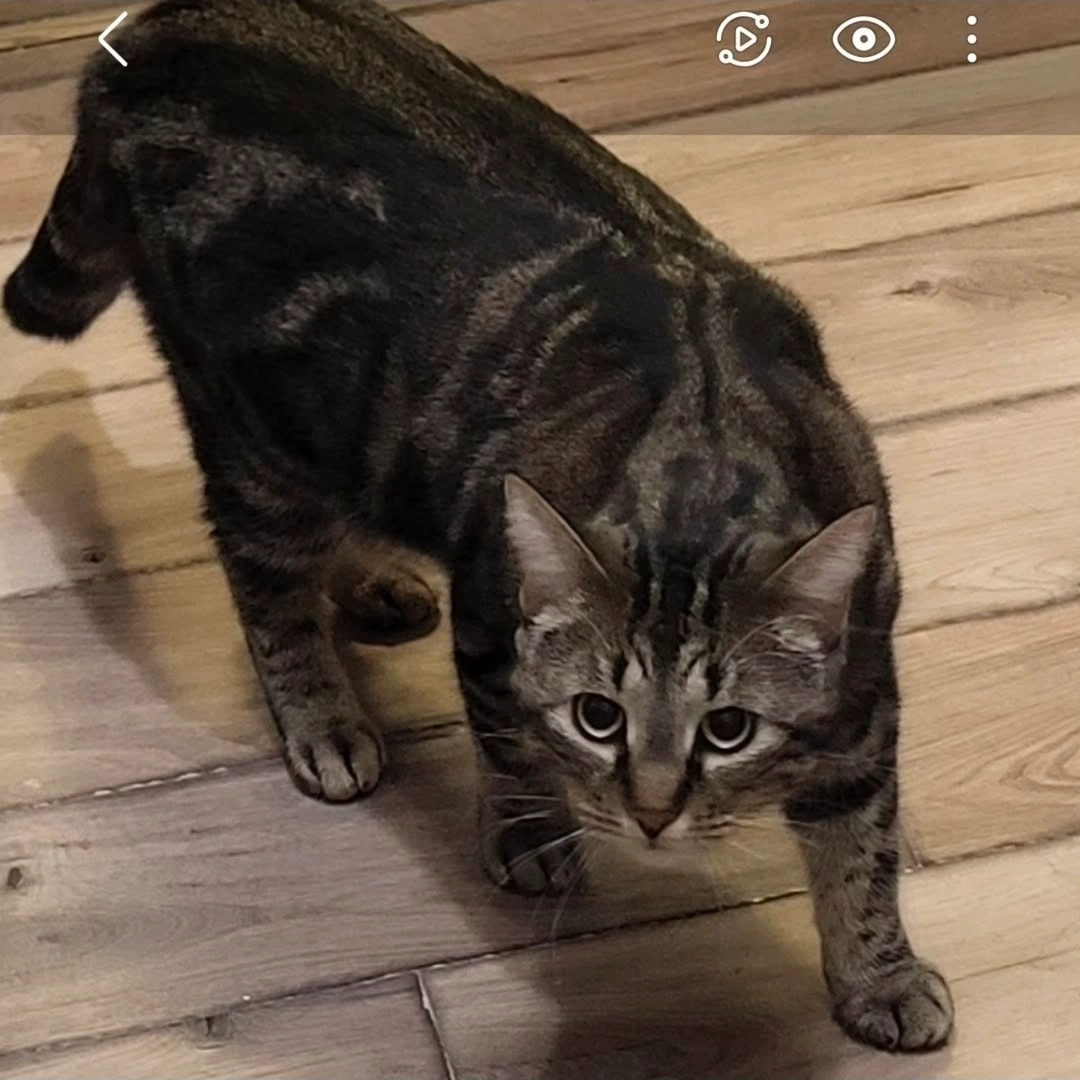 He's a male all black cat 2 years old with a bald spot on his shoulder hes always fighting other cats or dogs but is very friendly with humans