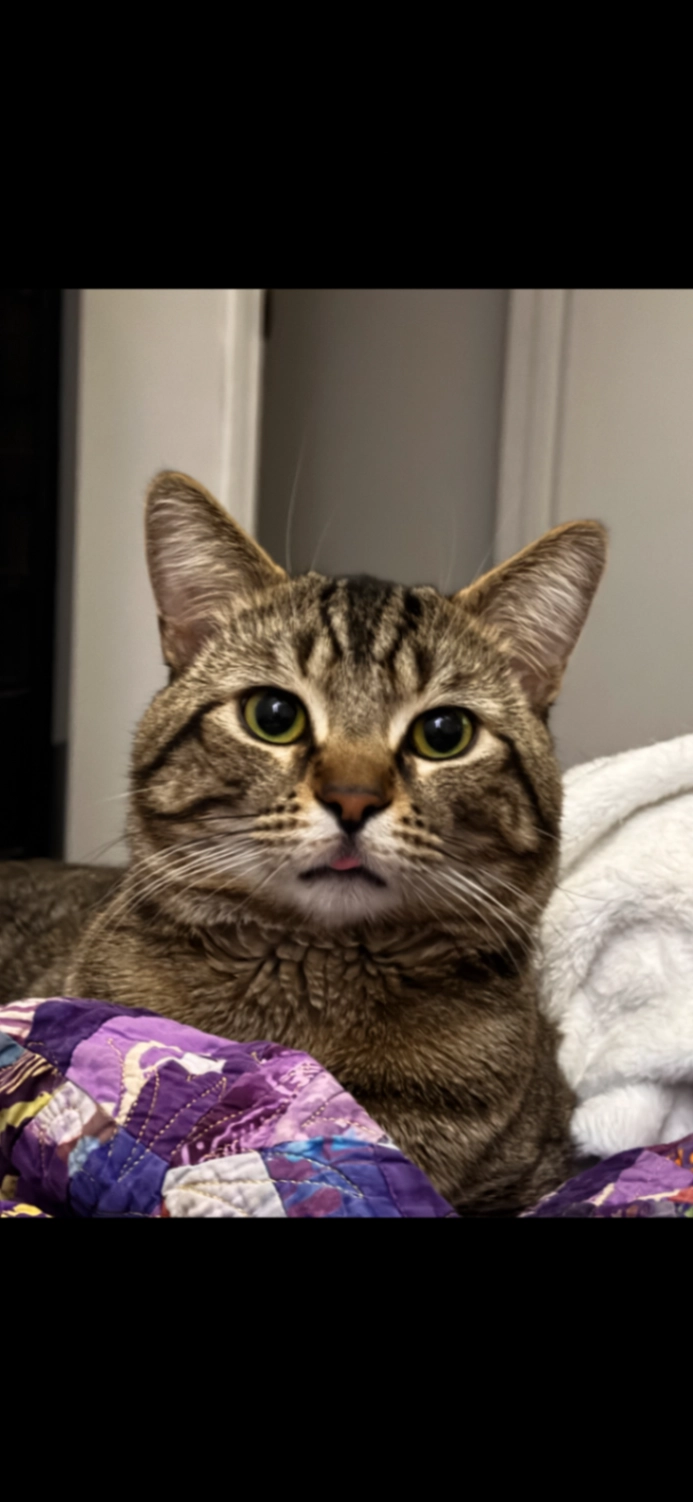 Female cat, doesnβt have her tag on (she has habit of removing her collar), friendly, grey and white tabby, has a BLACK SPOT on NOSE.