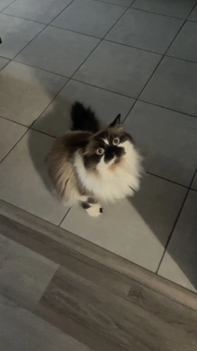 Friendly cat, tuxedo color and one year old. Love playing with strings. He lives in Norfolk area near mcmaster campus
