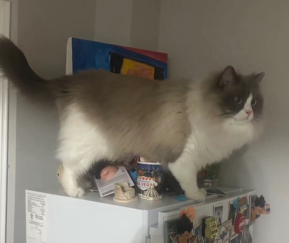 Harlow is very friendly as well as shy, she gets easily frightened when approached but if you stick a hand out she will approach you and rub her face on your hand. Harlow is a larger cat with a long colourful coat.