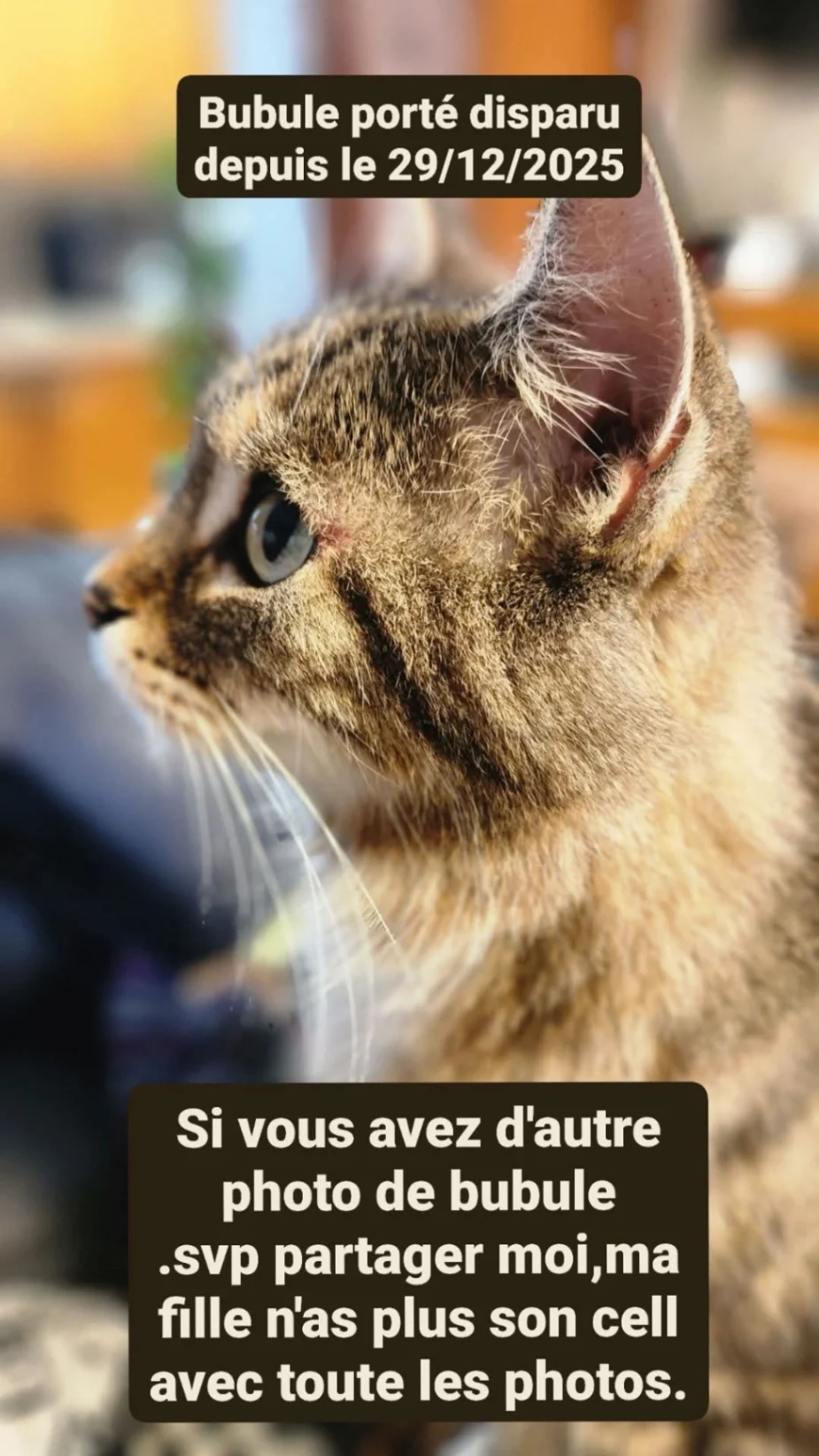 Toute information, même minime, pourra nous aider à ramener Mio à la maison !