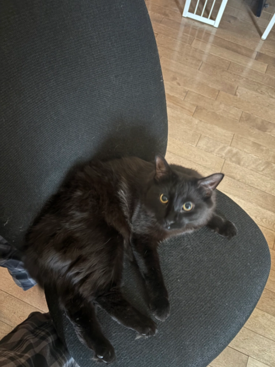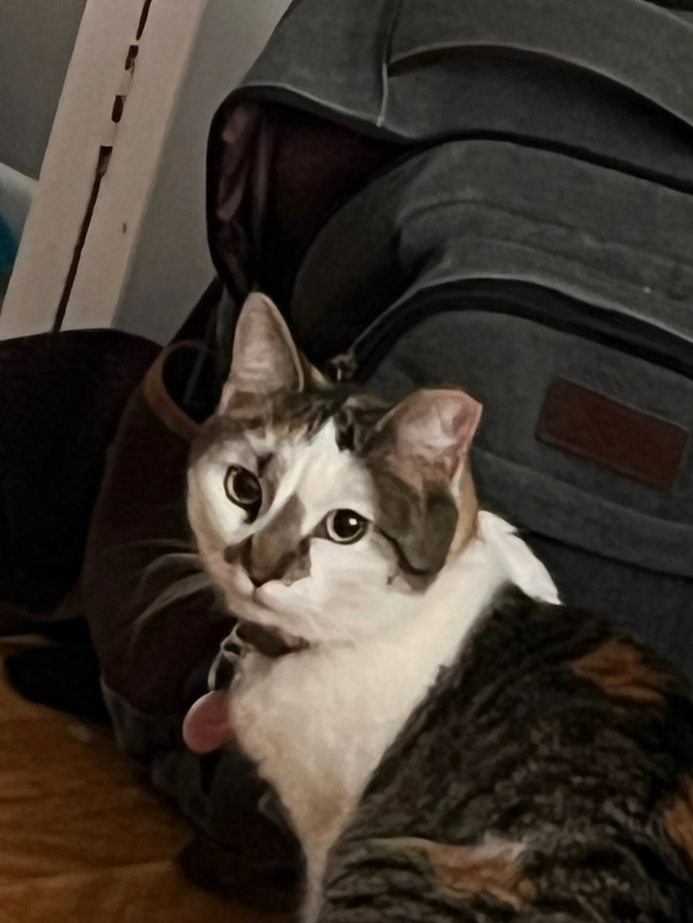 It's my friend's cat. I'm just here helping her. Colgate was staying at her friends there.