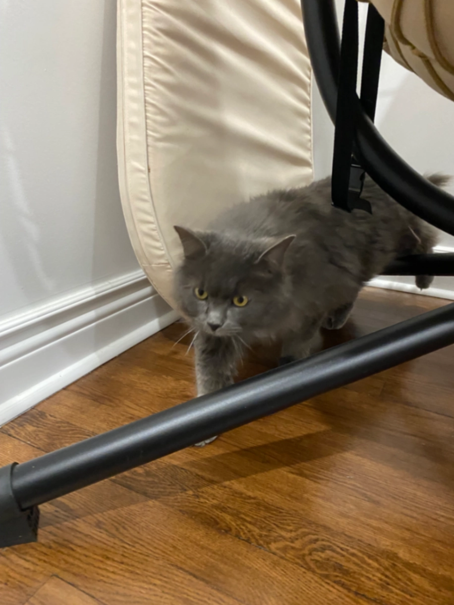 Il est quand même grand avec le poil long. Il se laisse câliner et il est gris