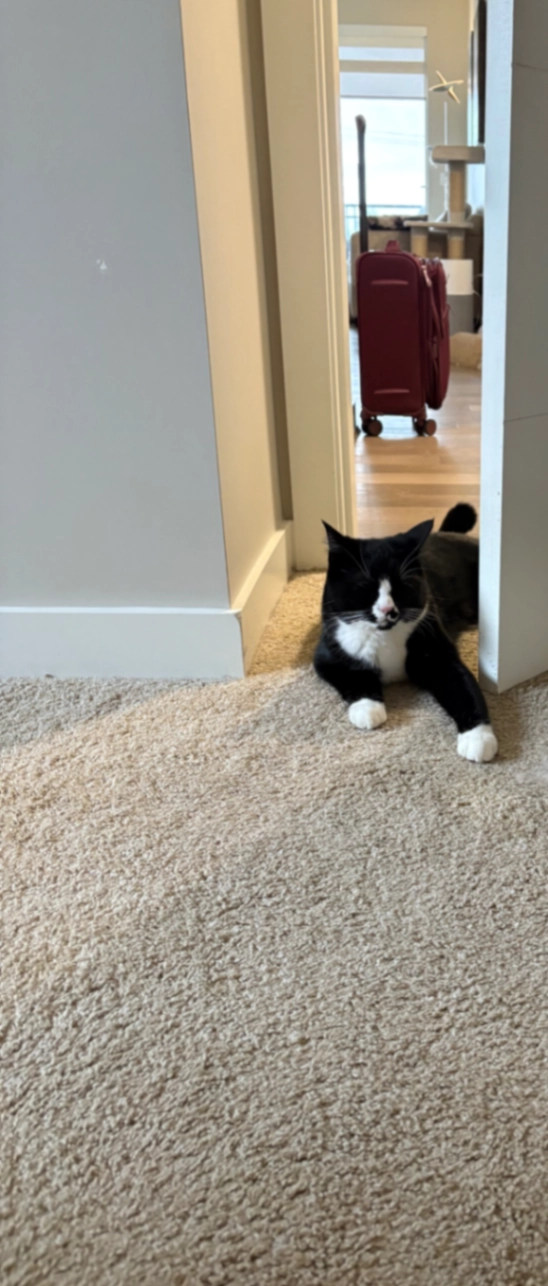 Enzo is a one and a half year old Tuxedo cat. Heβs an indoor cat and has never been outside before.