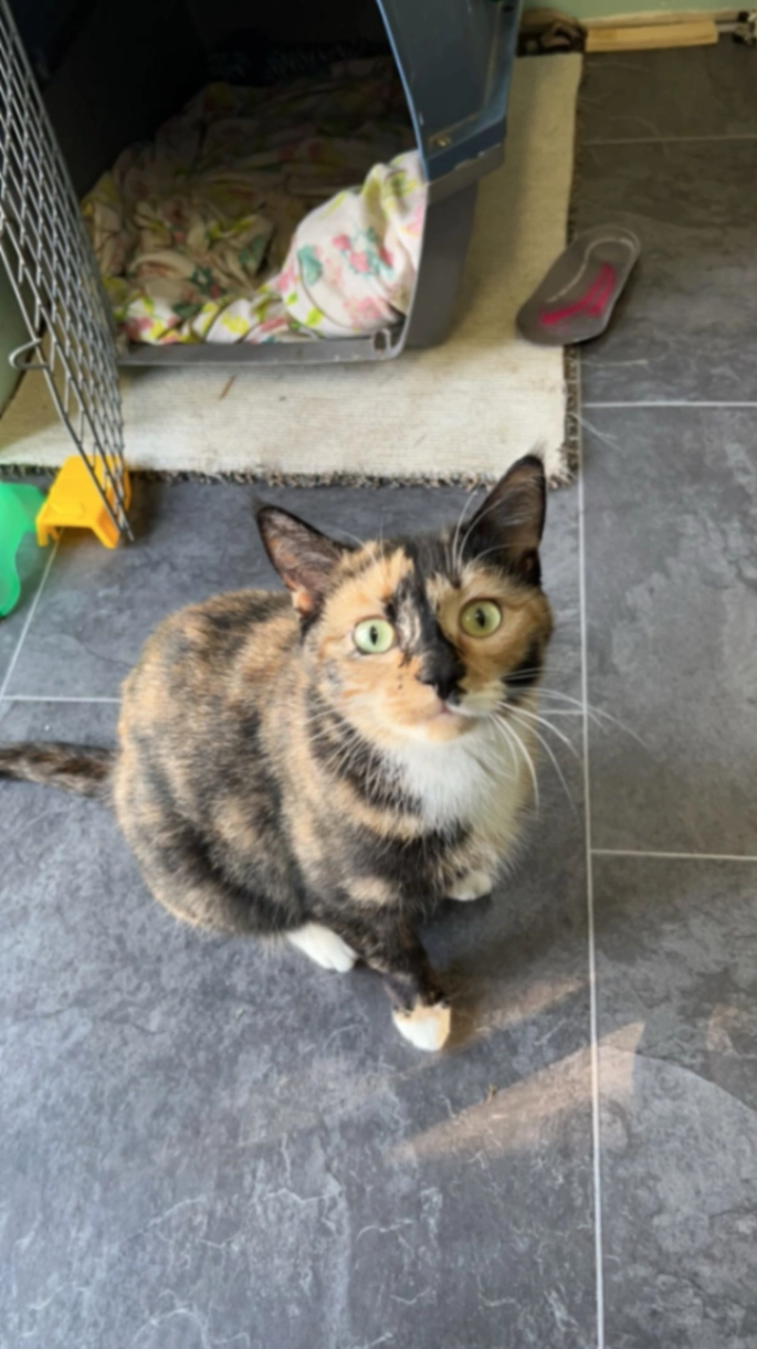 Hershey is 5, Female. She’s very friendly but a very skittish, i rescued her when she was a kitten so she can be a little scared and doesn’t like loud noises.