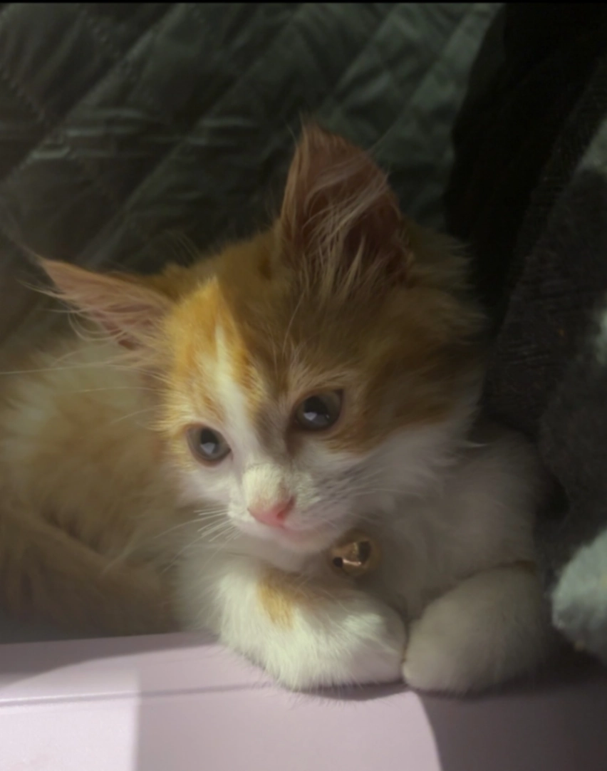 He has one white ear and one black ear. it’s a male cat. His very anxious of new people and loud noises but his a calm and loving cat. His usually an indoor cat.