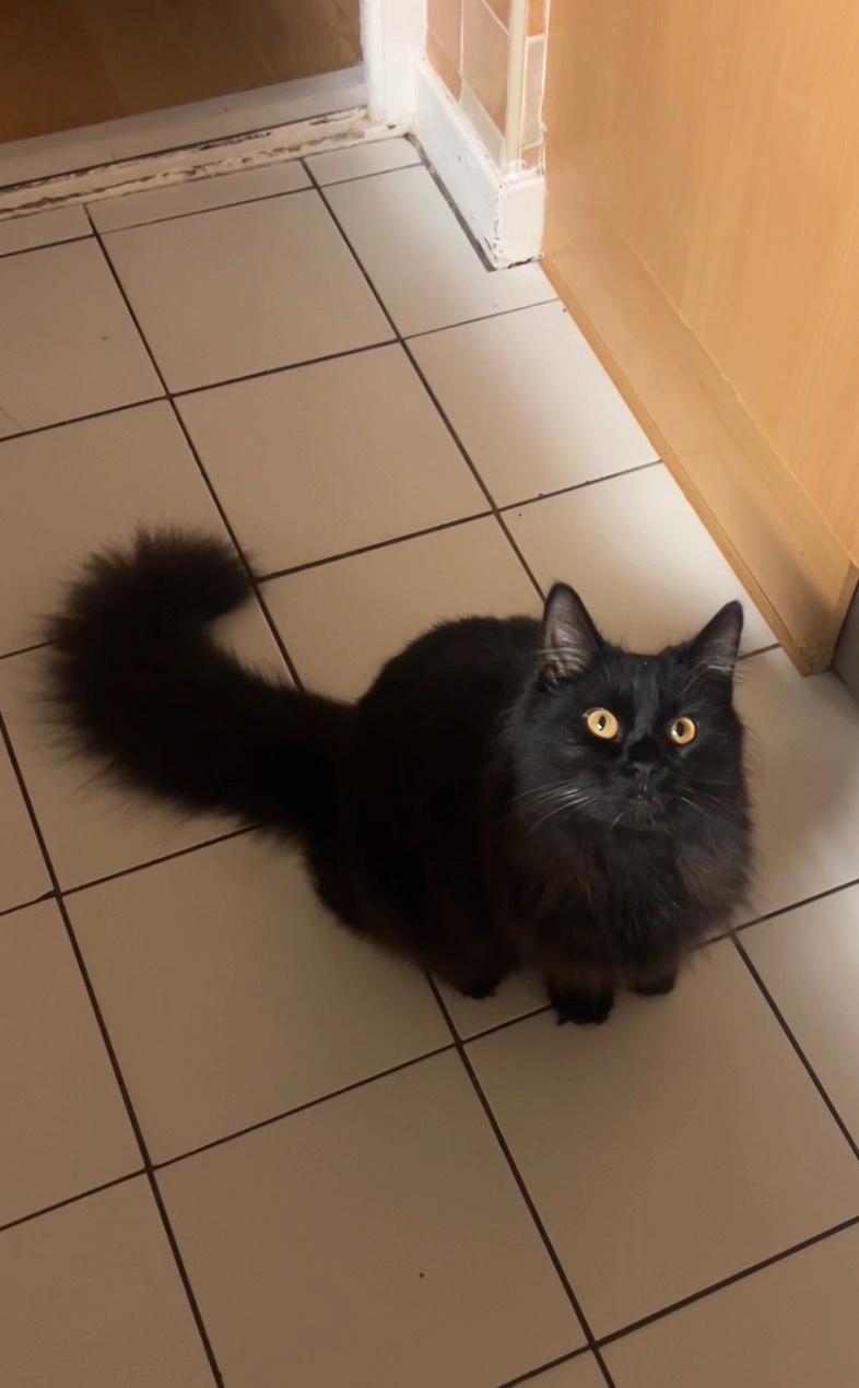 He is only about a foot long, with a very fluffy tail. He was a stray that we rescued and has a nasal infection so he is very sniffly. He can't smell which is why he probably hasn't made his way home.