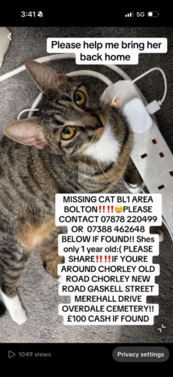BlossomReunited after2w, 1dI had two people contact me about sightings, and felt very secure knowing that the QR code meant my details remained private. The second sighting lead me directly to her! Without the posters we wouldn't have found her!