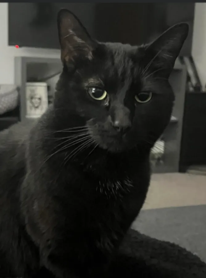All black medium neutered male cat. He’s very timid so is likely hiding somewhere.